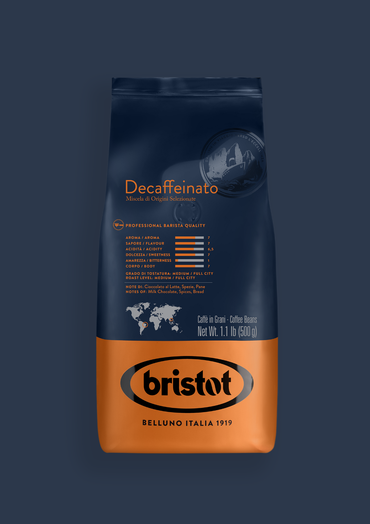 Inspired by Bristot's founder Domenico Bristot, this blend perfectly combines Ethiopian Sidamo beans’ refined acidity and candied orange notes, with spices and nutty flavours from Indian and Central American high-grown beans. A perfectly balanced and delicate espresso.